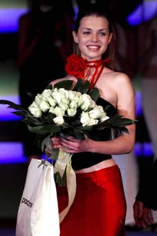 【文匯專訊】二○○○世界超級模特兒大賽在北京揭曉,來自白俄羅斯的瑪瑞娜摘取桂冠。本屆大賽由加拿大寶姿(國際)時裝、法國巴黎大都會模特經紀公司和中國新絲路模特經紀公司共同舉辦,來自四十五個國家的四十八名佳麗參加了角逐。