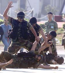 圖為黎巴嫩士兵在儒L式上表演徒手擒拿