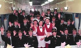 【文匯專訊】在北京至蘇州的「紅旗列車」上,「鐵嫂」組乘務員開始為乘客服務。平均年齡卅三歲的廿七名「鐵嫂」們是從北京列車段各列車上選拔出來的有實際工作經驗的優秀乘務員,她們工作細緻、認真負責,深受乘客好評。