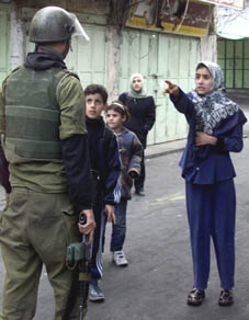 【文匯專訊】25日,一名巴勒斯坦少女與以色列士兵爭辯,該士兵阻止她進入被以軍關閉的約旦河西岸城市希伯倫。
