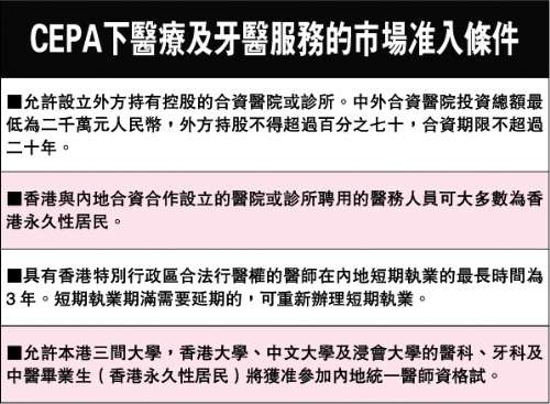 CEPA下醫療及牙醫服務的市場准入條件(大公報)