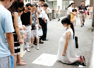 【文匯專訊】一名3年來長期在深圳街邊乞討,自稱湖南人、丈夫遭遇車禍的孕婦,多次被記者的鏡頭拍攝到。2006年9月5日晚,她因涉嫌欺騙,被警察帶回派出所調查。