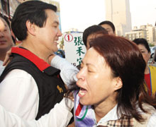 據台灣《聯合晚報》報道,當時,高雄?無黨籍女市「議員」候選人張禾宜,一邊高喊「馬英九下台」,一邊出手揮擊馬英九。馬英九的隨扈雖出手阻擋,但馬英九左臉頰及左肩部位仍遭打,場面混亂。