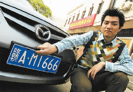 1日上午8時,記者來到南昌市下羅車管所,此時已有近百市民早早來到這裡排隊等候。排在隊伍第一個的是一位姓范的小伙子,他告訴記者,早就聽說南昌車管部門要開辦車牌自助選號的業務了,為了能挑上一個好號碼,他把買車的時間也推遲到了3月份。昨天早上他起了個大早,6點來鍾就驅車趕到車管所,沒想到還真讓他排到了第一個,真是讓他興奮。這會兒,他早已經想好了要為自己的愛車選的車牌號,就是「贛AM1666」。上午8時30分,作為南昌市小型車號牌自助選號的頭一個受益者,范先生第一個選到了自己喜歡的號碼。