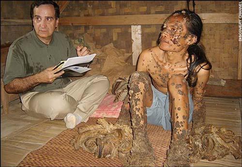 由於天生的基因問題,德德的免疫系統某種功能缺失,人乳頭瘤病毒可以侵入他體內,改變細胞形成機制,導致皮膚上長出了大量多餘的物質,就像樹皮和樹根狀的肉瘤。