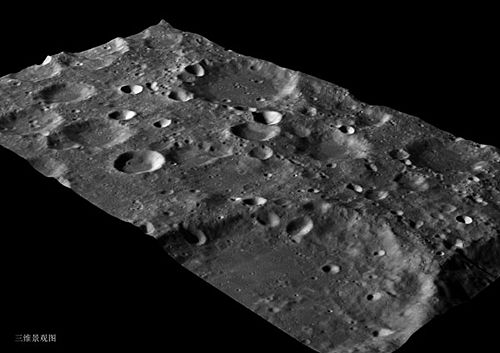 中央電視台的報道介紹,這張月球三維立體圖片所體現的地貌是月球表面的高地,就好比中國的青藏高原。這塊區域的高差達到5200米左右,最底處位於圖片左下腳的坑底,最高處位於圖片下部中間的突起地帶。