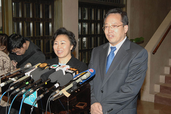 結合優勢:運輸及房屋局局長鄭汝樺(左)及深圳市副市長張思平出席港深機場合作聯合專責小組首次會議後會見傳媒。