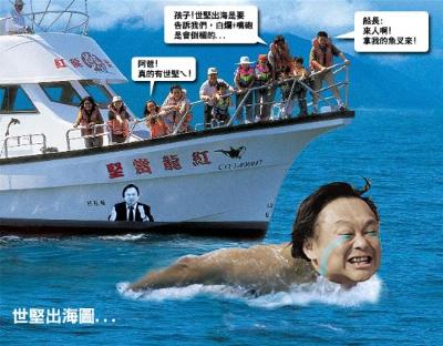 【文匯專訊】外界關注的民進黨「立委」王世堅「跳海支票」,終於要在28日兌現。今天上午傳出王世堅將在中午確定於萬里的瑪鋉漁港跳海。目前他已經出發,各家電視台的採訪車紛紛火速趕往現場,屆時是否會有「賞堅團」在旁觀賞,目前還不得而知。