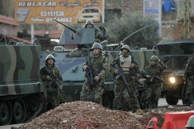 1月27日,黎巴嫩軍方在貝魯特郊外巡邏,氣氛十分緊張。