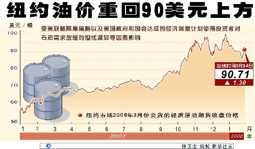 【文匯專訊】受美國聯邦儲備委員會可能再次降息和石油輸出國組織(歐佩克)將維持現有產量等消息影響,國際油價29日繼續走高,紐約市場油價兩周來首度站上91美元高位。