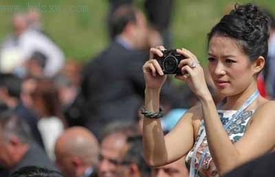 雖為明星,不忘記者的職責。章子怡不停拍照