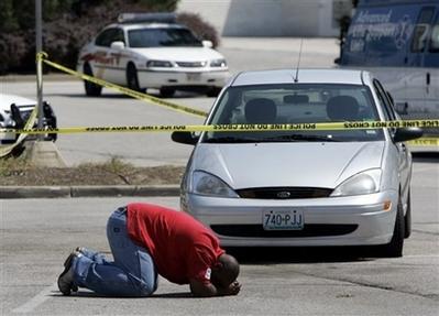 死者的一位親戚趕到槍案現場後非常悲痛。