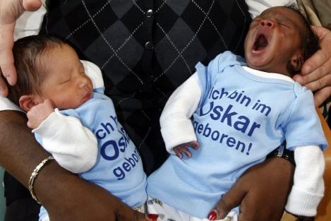據德國《世界報》7月16日報道,7月11日在柏林的利希滕貝格診所一對膚色截然相反的雙胞胎呱呱墜地。兩兄弟一黑一白,引來全診所的醫護人員的圍觀。診所的主治醫生週三說,「我們簡直不敢相信自己的眼睛,孩子的母親也一直疑惑地盯著這對小寶貝兒左右瞧。」