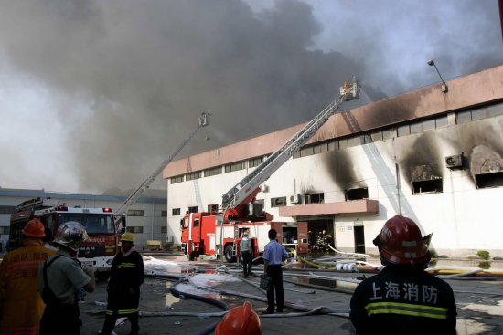 【文匯專訊】上海一工廠發生火災已造成3名消防隊員犧牲。7月17日,消防隊員奮力撲救大火。當日12時20分左右,上海市奉賢區一家塑膠製品工廠倉庫發生火災,過火面積約2000平方米。消防部門派出300多名消防官兵、50餘輛消防車赴現場滅火,火災已造成3名消防隊員犧牲,9名消防隊員受傷,未造成工廠人員傷亡。截至18時,大火基本被撲滅,消防官兵清理火場,撲滅殘火。(新華社)