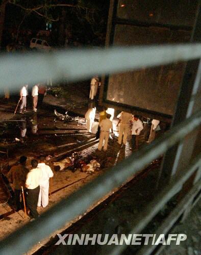 7月26日,印度警察在西部城市艾哈邁達巴德查看爆炸現場。印度警方發言人27日說,印度西部城市艾哈邁達巴德26日晚發生的連環爆炸已造成至少29人死亡,數十人受傷。新華社/法新