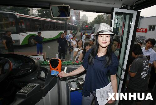 周迅坐公交倡導「綠色出行」。7月10日,周迅在北京802路公交總站刷公交「一卡通」乘車。當天,影視明星周迅來到位於北京潘家園古玩市場附近的802路公交總站乘車,倡導市民盡量選擇公交出行,保護環境。新華社發