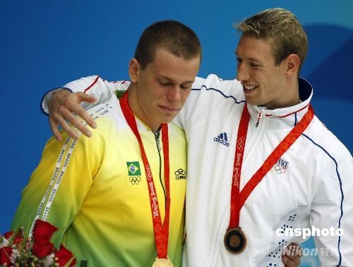 【文匯專訊】中新網綜合消息,剛剛為巴西奪得北京奧運會首枚金牌的二十一歲泳將塞薩爾·西埃洛已成為當地頭號紅人。他在今天上午男子五十米自由泳中,出人意料地戰勝了現世界紀錄保持者澳大利亞名將沙利文和早前獲得男子百米自由泳金牌的法國選手貝爾納,為自己祖國拿下首枚金牌,賽後激動不已的他落下淚水。