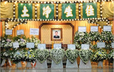 在世界殯儀館外,放滿了各界送來的花圈。陳兆龍的家人早上乘坐消防處安排的車輛,抵達殯儀館打點;消防處亦派人到場為今次的葬禮作準備。