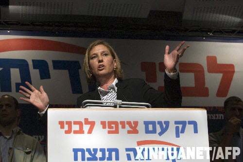 9月14日,以色列外交部長利夫尼在特拉維夫為其競選前進黨主席而舉行的集會上發表講話。新華社/法新