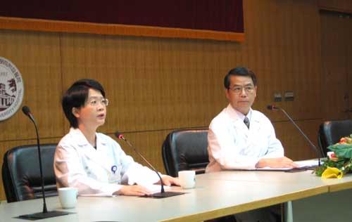 台大醫院副院長王崇禮(右)、發言人譚慶鼎(左)共同召開記者會,會中對記者的麻辣提問,兩人幾乎無法招架,記者會草草收場。