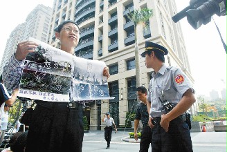 吳淑珍19日又不出庭,陸續有民眾看不下去,到陳水扁住處所在大樓附近表達不滿。(圖:台灣《聯合報》)
