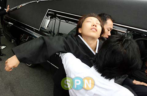 演員安在煥的出殯儀式於11日早晨8時在首爾江南聖母醫院殯儀館舉行,妻子鄭善姬再次暈倒,令現場人員難過萬分。