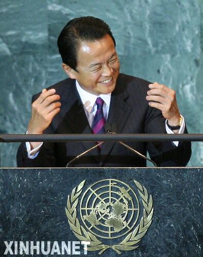 【文匯專訊】9月25日,在美國紐約聯合國總部,參加聯大一般性辯論的日本首相麻生太郎用日語講了幾分鐘後得知大會的日語翻譯未就位,台下代表聽不懂他說什麼時不禁有些尷尬地啞然失笑。當日,第63屆聯大一般性辯論進入第三天。(新華社)