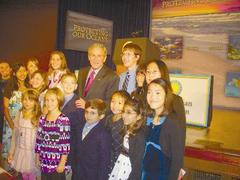 張穎芯(最右)與其它組別的前三名得獎人與布什總統合照。(美國《世界日報》/黃志筠提供)。