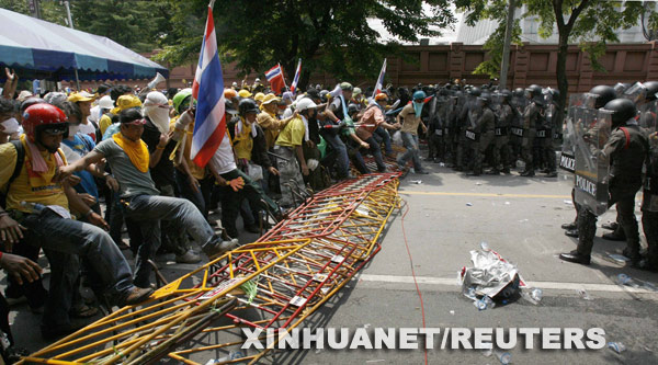 反政府組織人民民主聯盟(民盟)的支持者6日晚封鎖了泰國國會大院,要求頌猜總理辭職。7日清晨,泰國警方施放催淚彈驅散民盟支持者,造成近100人受傷。7日下午,民盟要求頌猜總理在18時前解散國會下議院,否則將採取果斷措施。