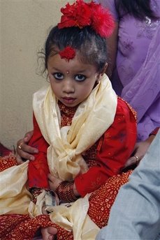 身披紅絲綢頭戴大紅花的3歲女童馬蒂納被選為新的活女神