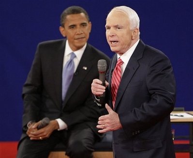 【文匯專訊】據中新網10月8日報道,美國當地時間10月7日晚上21點左右(北京時間10月8日早上9點左右),美國共和黨總統候選人麥凱恩和民主黨總統候選人奧巴馬在田納西州的貝爾蒙特大學開始辯論,這是兩人選舉議程的三場辯論中的第二場辯論。