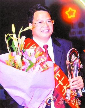 黃兆巒曾有多種榮譽加身,圖為其正在接受湛江市「十大傑出青年」頒獎。