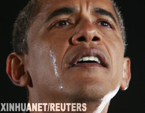 11月3日,美國民主黨總統候選人奧巴馬在北卡羅來納州的夏洛特舉行的競選集會上流著眼淚談起他的外祖母。奧巴馬說,他身患癌症的外祖母鄧納姆因醫治無效,已於2日在夏威夷去世。新華社/路透
