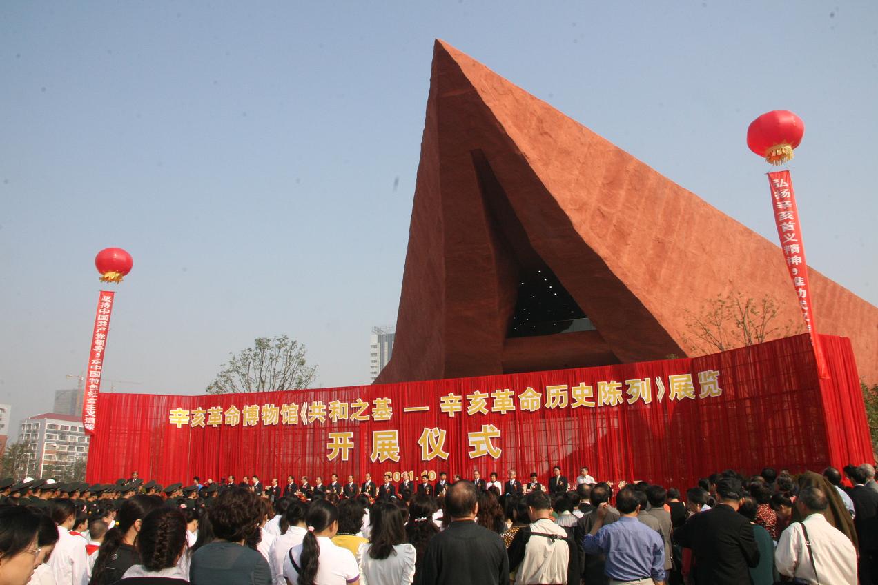 辛亥革命博物館是武漢為紀念辛亥革命武昌首義100周年而興建的重點項目,位於武漢市武昌區首義廣場。博物館建築設計傳承中國「雙坡屋頂」和飛簷翹角的建築特質,幾何形外觀,寓意「破土而出」;V字型組合,寓意勝利;「楚國紅」色調,頌揚敢為人先的首義精神。