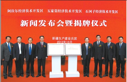 兵團黨委副書記、司令員劉新齊在揭牌儀式上說,今年8月30日,國務院復函批准石河子經濟技術開發區擴區,同時批准設立五家渠和阿拉爾兩個國家級經濟技術開發區,這是兵團開發區建設中具有里程碑意義的一件大事。標誌著兵團開發區建設進入了一個全新的發展階段,必將為兵團對外開放、經濟發展注入新的活力。兵團各級、各部門要按照黨中央、國務院和自治區黨委、政府的要求,有效利用區位優勢,優化產業結構,進一步提升三個國家級開發區的綜合競爭實力,充分發揮對有關師、對兵團經濟、對新疆發展的窗口、示範、輻射和帶動作用,努力把開發區建成兵團產業發展的核心區、改革創新的先導區、科技人才的集聚區和城鎮化的示範區,建成兵團經濟社會發展的重要增長極。