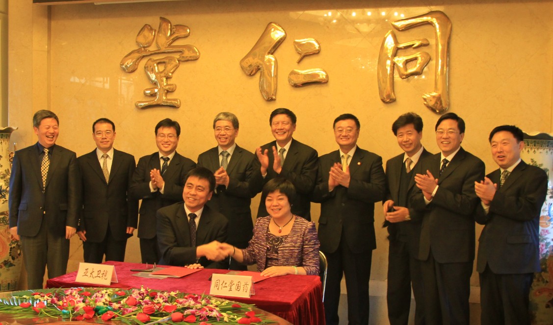 北京同仁堂國藥(香港)集團有限公司與亞太衛視發展有限公司週一在京舉行合同簽約儀式,共同投資1000萬港幣在香港設立的合資公司——北京同仁堂傳媒(香港)有限公司。中國航天科技集團公司副總經理、亞太衛星董事長雷凡培、中國衛星通信集團有限公司總經理卓超、北京同仁堂(集團)有限責任公司董事長殷順海、北京同仁堂集團總經理梅群等出席儀式。