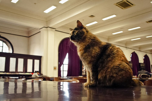 似乎被圖書館的氛圍耳濡目染,館長一向都悄然而至,從不會發出喵嗚的叫聲。