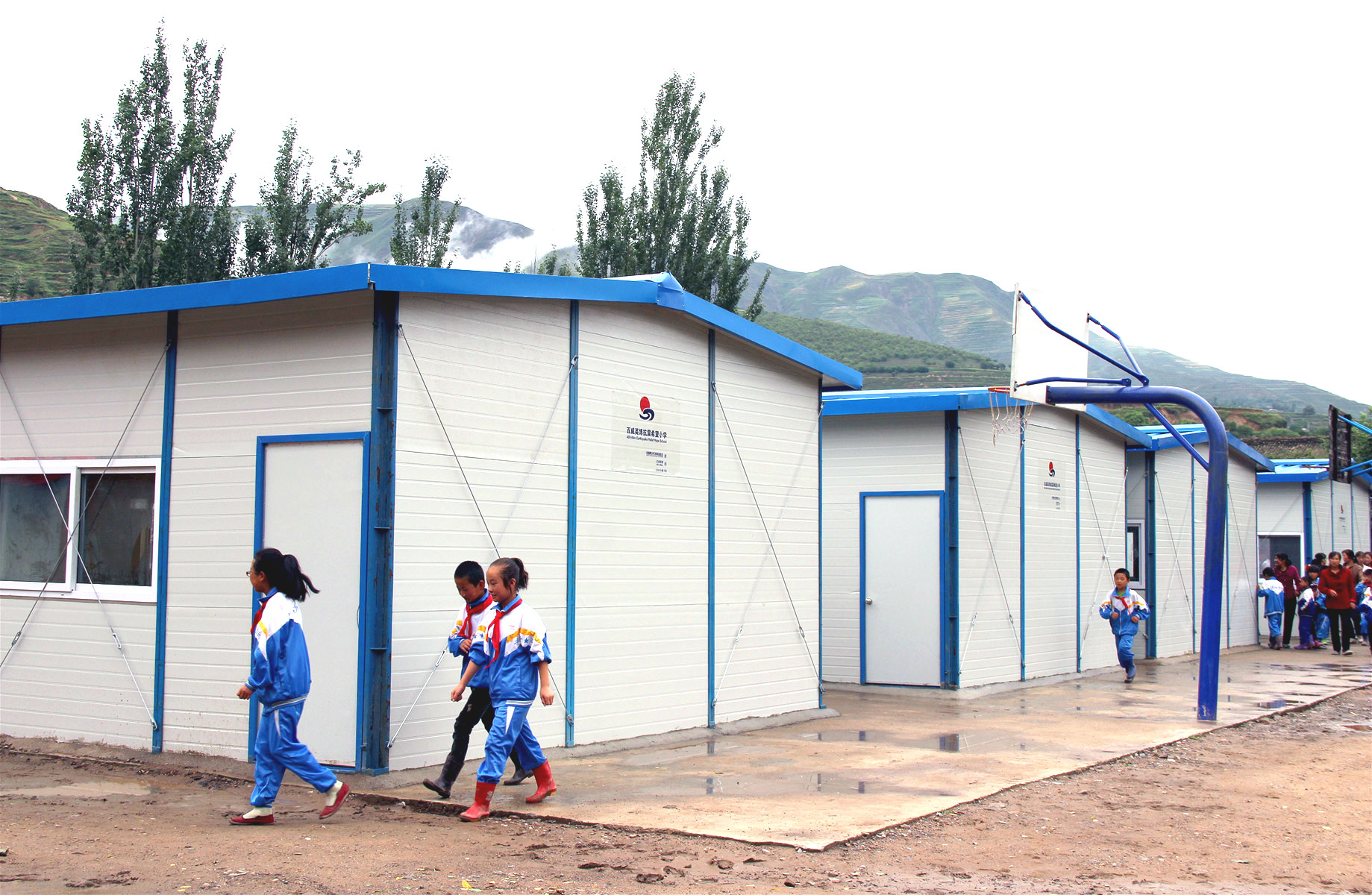 據瞭解,這所抗震希望板房學校由中國青基會、百威英博啤酒集團援建,總投資23萬餘元,共有12間教室622.6平方米。地震發生後,在志願者、學校教師與專業技術人員的努力下,克服餘震和連日降雨影響,僅用幾天時間就使這所板房學校竣工完成。