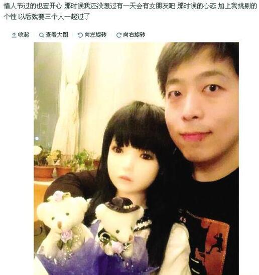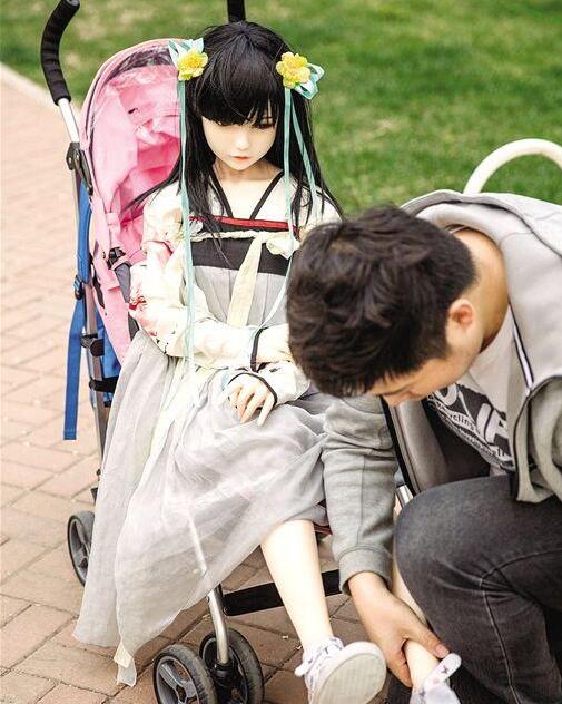 這個男子叫宋渤,出生於天津,是一個3D遊戲設計師。旁邊坐著的,就是他花了1.4萬元買回來的女兒——小蝶。小蝶是個身高1.45米的充氣娃娃,在行業內一般稱她為實體娃娃。