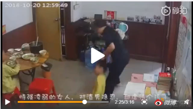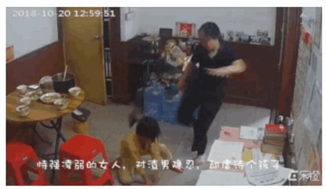 視頻中被打女孩兒,既不還手也不逃走,每次受到虐待後,仍安靜地走回座位坐下。而視頻中出現的另一疑似其弟弟的男童,則似乎對女孩兒被虐待的情況司空見慣,不以為然。
