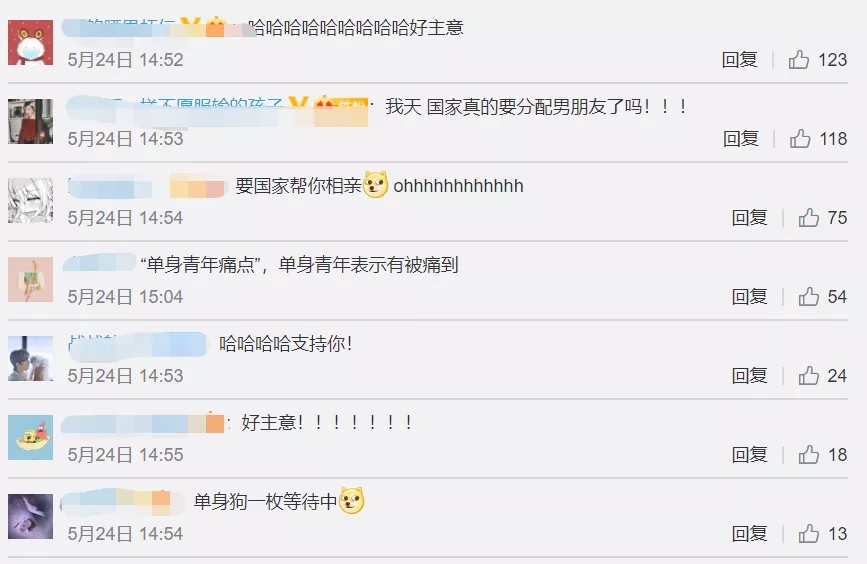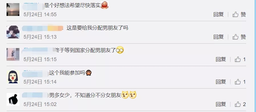 該提案在網絡上迅速引起了網友們的廣泛討論,大部分網友表示支持該提案,「終於等到國家分配男女朋友」。